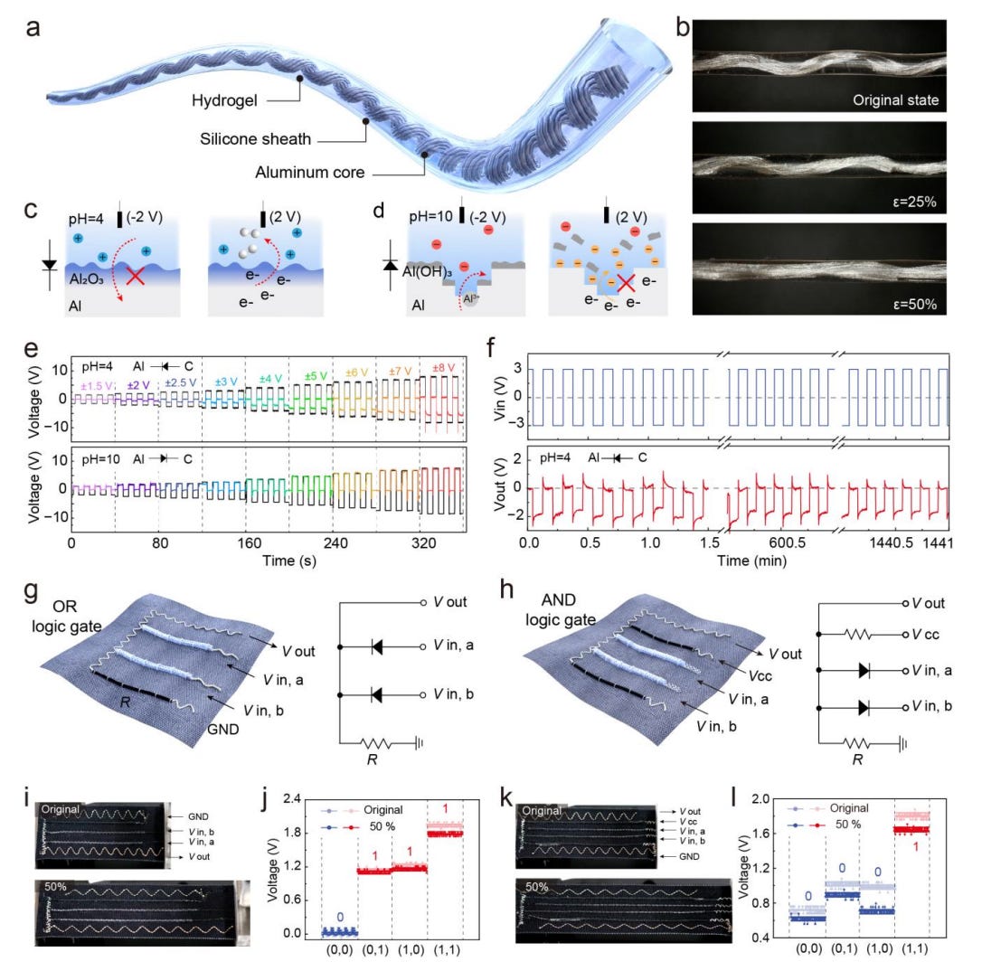 The research introduces a different approach. Instead of attaching computation to textiles, it embeds logic and memory directly within a single fibre. The same fibre can be configured to behave either as a diode, which controls current direction, or as a memristor, which retains a memory of electrical states. This transforms the fibre from a passive structural element into an active computational unit, enabling the possibility of distributed computation within fabrics.